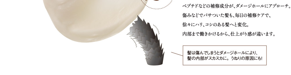 届きにくい髪の内部に働きかける!ツヤをだしながら、ボリュームのある髪へ。
